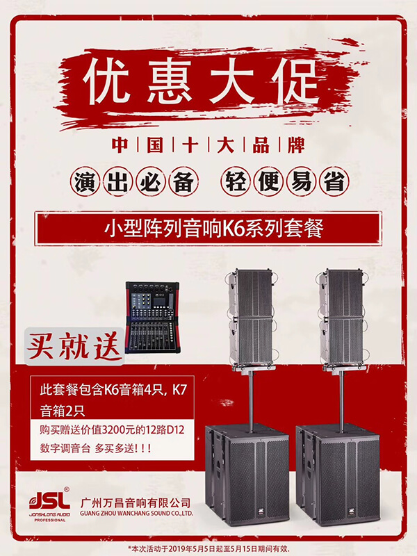 “音您而來 響您所想”萬昌音響展會期間隆重推出小型陣列音響優惠大促活動,活動時間從2019年5月5日起至年5月15日結束,活動期間,優惠多多,驚喜萬分,歡迎新老用戶谘詢訂購。